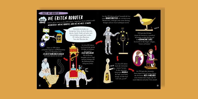 "Ich finde das Buch einfach klasse. Die vielen Illustrationen wie auch die kurzen wissenswerten Texte sorgen für ein angenehmes Lesen und Entdecken." lovelylivinginstyle auf Instagram "Meine Meinung: Wir haben mittlerweile einige Bücher zum Thema, aber dieses hier ist auf jeden Fall das, das am meisten ins Detail geht." kinderbuch.und.tierliebe auf Instagram "Was dieses Buch so besonders macht, ist die Art und Weise, wie es komplexe Themen entmystifiziert...Es weckt die Neugier und ermutigt dazu, die Welt um uns herum zu hinterfragen." etira auf vorablesen.de/junior "Richtig interessant" lavazza1306 auf vorablesen.de/junior "Stärken des Buches: Klarheit und Verständlichkeit, Ausgewogenheit und Zukunftsperspektiven" carlo1301 auf vorablesen.de/junior "Dieses Sachbuch ist perfekt für Grundschulkinder. Die Illustrationen sind sehr kindlich-ansprechend..." Instagram "Komplizierte Technik wird in diesem buch einfach erklärt.! Kruschel Kinderzeitung "Ein cooles Roboter-High-Five für dieses umfangreiche und kindgerechte Sachbuch. Allein das Thema ist schon super, aber die Umsetzung setzt dem Ganzen nochmal ein Schräubchen oben drauf." Instagram "...sehr unterhaltsam richtig viel Grundlagenwissen." Welt am Sonntag Quizze auf antolin "Man erfährt alles, was es über Robotik und künstliche Intelligenz gerade zu wissen gibt." Salzburger Nachrichten "Der Bildband erklärt, wie Robotik funktioniert, was Nanobots sind und was ein Algorthmus." SCHULE "Ein großartiges Sachbuch" Instagram "betrachtet die Thematik unaufgeregt, fesselnd und unterhaltsam." kinderbuecherei auf Instagram "ein sehr informatives Sachbuch für Kinder ab 8" katerinas_bookishworld_ auf Instagram "So erfahren wir viel Wissenswertes und beiläufig eine sehr systematische Einführung in den Phänomenbereich, der unseren Alltag gerade so gründlich auf den Kopf stellt...sehr empfehelenswert" AJuM - Arbeitsgemeinschaft Jugendliteratur und Medien der GEW "...ein gelungenes Sachbilderbuch für neugierige Kinder, das Wissen nicht nur vermittelt, sondern zum Weiterdenken anregt....sehr empfehlenswert" AJuM - Arbeitsgemeinschaft Jugendliteratur und Medien der GEW "...sehr empfehlenswert..." AJuM - Arbeitsgemeinschaft Jugendliteratur und Medien der GEW "ein Blumenstrauß an Grundlagenwissen" Eselsohr "liefert Grundlagenwissen für interessierte Kinder ab 8 Jahren" "Und zahlreiche kunterbunte Zeichnungen, Fotos und Infografiken veranschaulichen die riesige Faktensammlung und machen schon alleine großen Spaß." NDR Kultur "Mir gefällt gut, wie sie [Kinder] hier an das Thema herangeführt werden und wie hier alles kindgerecht und mit vielen Illustrationen erklärt wird." Geschichtenwolke Kinderbuchblog "kluges Buch für kleine Technikfreaks" wir eltern "spannendes Sachbuch über Roboter und KI... kurze, gut verständliche Texte; großartig illustriert" liesa_kinderbuchbloggerin auf Instagram " informatives und interaktives Kindersachbuch, das Lust macht, Technik zu entdecken und selbst auszuprobieren" Blog favolina_und_junior "Anschaulich und unterhaltsam" Buchprofile/medienprofile "Auch Erwachsene lernen hier nochwas dazu. Informativ und gut verständlich." evangelisch.lesen "eine hervorragende Einführung in diese faszinierende Welt" Passauer neue Presse "Ein unterhaltsames, lehrreiches und wunderbar gestaltetes Buch, das neugierig macht" buechereiosternburg auf Instagram
