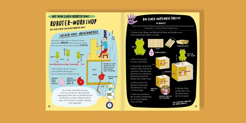 - mit witzigen Comics und Mitmach-Teil: Bau dir einen automatischen Frosch, eine Roboterhand oder einen Algorithmus