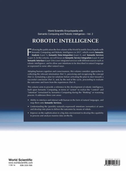 This volume aims to provide a reference to the development of robotic intelligence, built upon Semantic Computing, in terms of "action" to realize the "context" and "intention" formulated by Semantics Computing during the "thinking" or reasoning process. It addresses three core areas: Ability to interface and interact with human in the form of natural languages and map them onto Semantic Services, Understanding the (possibly naturally-expressed) intentions (semantics) of users and develop into plans to deliver the outcomes by means of robots, Improve on the sophistication in a big data environment to develop the capability to process and analyze massive data on-the-fly.