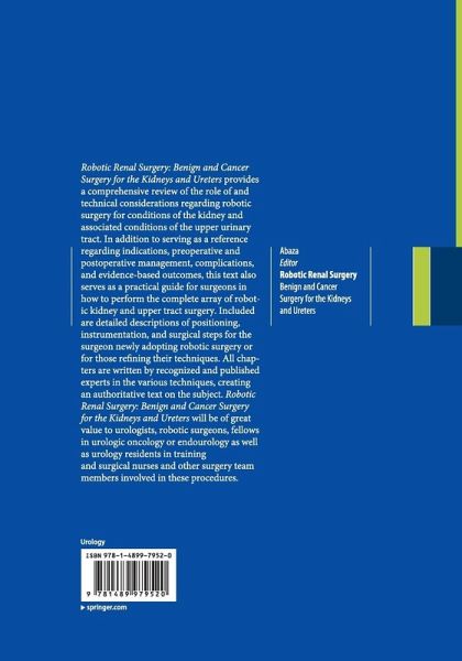 "Editor Abaza and 35 co-authors provided a survey of current procedures related to kidney and the upper urinary tract. ... This textbook should facilitate the learning process of most beginners in robotics and provide experienced surgeons with some interesting tips and tricks." (European Urology Today, December 2013 - January 2014)
