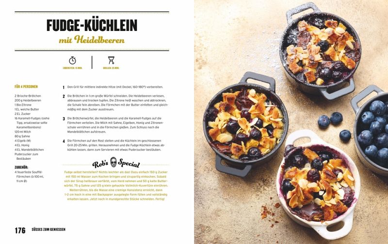 ... aber nicht nur. Das BBQ Kochbuch zeigt Rezepte für die ganze Familie und dabei bruzelt nicht nur Fleisch auf dem Grill. Auch Beilagen, Gemüsegerichte, veganes Grillen sowie Desserts kommen nicht zu kurz. Für seine Kreationen lässt sich Robin Schulz immer wieder durch Reisen inspirieren und grillt international.