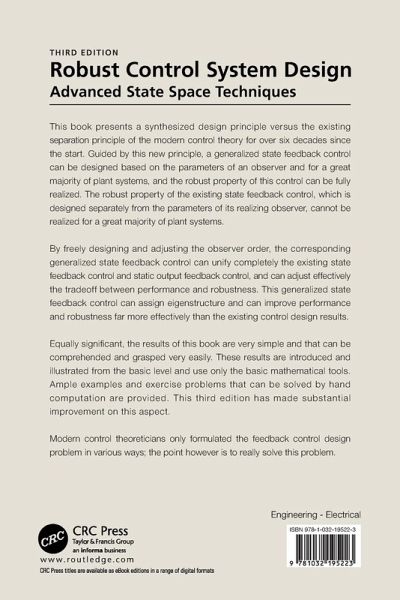 1. System Mathematical Models and Basic Properties. 2. Single-System Performance and Sensitivity. 3. Feedback System Sensitivity. 4. A New Feedback Control Design Principle and Approach. 5. Computation of the Solution of Matrix Equation TA - FT = LC. 6. Observer Design 1: For Robustness Realization. 7. Observer Design 2: For Other Special Purposes. 8. Feedback Control Design for Eigenvalue (Pole) Assignment. 9. Feedback Control Design for Eigenvector Assignment. 10. Feedback Control Design for Quadratic Optimal Control. Appendix A: Relevant Linear Algebra and Numerical Linear Algebra. Appendix B: Real Design Projects and Problems. References. Index.