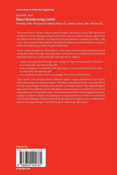 This contributed volume collects research papers, presented at the CIRP Sponsored Conference Robust Manufacturing Control: Innovative and Interdisciplinary Approaches for Global Networks (RoMaC 2012, Jacobs University, Bremen, Germany, June 18th-20th 2012). These research papers present the latest developments and new ideas focusing on robust manufacturing control for global networks.