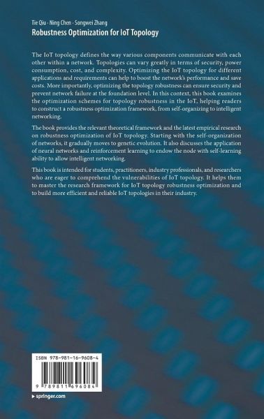 The book provides the relevant theoretical framework and the latest empirical research on robustness optimization of IoT topology. Starting with the self-organization of networks, it gradually moves to genetic evolution. It also discusses the application of neural networks and reinforcement learning to endow the node with self-learning ability to allow intelligent networking.