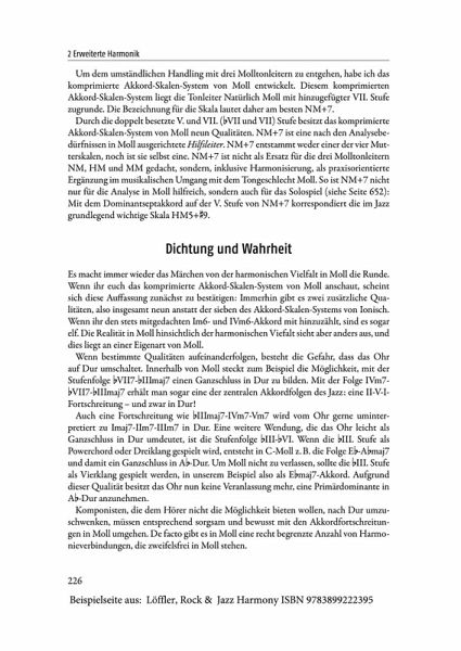 Verständliche und umfassende Harmonielehre der Rock & Jazzmusik mit Bezügen zur Klassik ; von der Fachpresse sprachlich, didaktisch und inhaltlich hoch gelobt. Durch den speziellen modularen Aufbau für absolute Neueinsteiger ebenso geeignet, wie für angehende Profis.Grundlagen werden in flacher Rampe sauber didaktisch aufgebaut und über 300 Seiten klar verständlich vermittelt. In weiten Teilen gibt es an jedem Kapitelende Aufgaben. Die Lösungen stehen zum freien Download bereit. So wird es zu Deinem Arbeitsbuch. Zusätzlich stehen ca. 100 mp3 - Klangbeispiele im Downloadbereich zur Verfügung sowie QR - Codes im Buch, die ua. zu You Tube Videos führen, wie beispielsweise der ersten Bluesaufnahme.Jeder Inhalt wird an weitgehend aktuellen Songbeispielen aus Pop, Rock und Jazz dargestellt und nachvollzogen. Kleine Ausflüge in die Vergangenheit fördern dabei ein ganzheitliches Musikverständnis: von der 33.000 Jahre alten Steinzeitflöte über den ersten Quartvorhalt 1415 und die Geburt der Zwischendominanten bis zur Entstehung des Blues und des modalen Jazz . Wichtige zusätzliche Themen sind enthalten, wie eine " Einführung in die Improvisation " oder etwa " Gehörbildung " und " Methodik - wie üben " (2 von 4 Bonuskapitel zum freien Download).