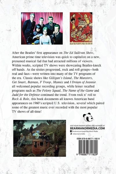 After the Beatles' first appearance on The Ed Sullivan Show, American prime time television was quick to capitalize on a new, presumed musical fad that had attracted millions of viewers. Within weeks, scripted TV shows were showcasing Beatles-knock off bands. As the sixties progressed, rock and roll groups-both real and faux-were written into many of the TV programs of the era. Classic shows like Gilligan's Island, The Munsters, Get Smart, Batman, F Troop, Mannix and I Dream of Jeannie all welcomed popular recording groups, while lesser recalled programs such as The Felony Squad, The Name of the Game and Judd for the Defense continued the trend. From rock n' roll to Rock & Role, this book documents all known American band appearances on 1960's scripted U.S. television, several which paired some of the greatest music ever recorded with the most popular TV shows of all-time!