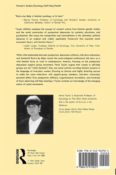 Although self-help has been an integral strategy of the women's movement, the burgeoning self-help publishing industry and growing popularity of talk shows encouraging personal confession have provoked vicious attacks on self-help from many feminists. Rock-a-By Baby examines the postpartum depression support group movement and exploring the relationship between gender, the ideas and strategies of women's self-help groups and feminism. Taylor uses interviews and personal letters, talk show transcripts, organizational newsletters and a survey of postpartum group leaders to illuminate conflicts played out in the arena of women's self-help.
