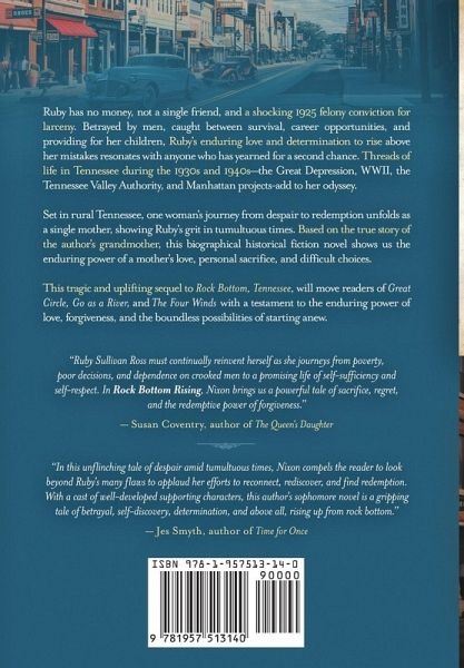 Ruby has no money, not a single friend, and a shocking 1925 felony conviction for larceny. Though she encounters betrayal, she embarks on a journey to re-enter her children's lives that will test the core of her being as obstacles chip away at everything but her resilient spirit. Deceived by men, caught between survival, career opportunities, and providing for her children, Ruby's enduring love and determination to rise above her mistakes resonates with anyone who has yearned for a second chance. Threads of life in Tennessee during the 1930s and 1940s-the Great Depression, WWII, the Tennessee Valley Authority, and Manhattan projects-add to her odyssey. Set in rural Tennessee, one woman's journey from despair to redemption unfolds as a single mother, showing Ruby's grit in tumultuous times. Based on the true story of the author's grandmother, this biographical historical fiction novel shows us the enduring power of a mother's love, personal sacrifice, and difficult choices. This tragic and uplifting sequel to Rock Bottom, Tennessee, will move readers of Great Circle, Go as a River, and The Four Winds with a testament to the enduring power of love, forgiveness, and the boundless possibilities of starting anew.