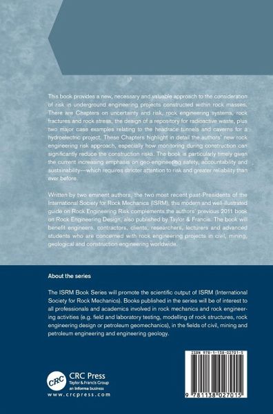 Preface Acknowledgements: International Society for Rock Mechanics About the authors 1 Introduction and background 2 Uncertainty and risk 3 Rock Engineering Systems (RES) auditing and Protocol Sheets 4 Rock fractures and in situ rock stress 5 Radioactive waste disposal: overcoming complexity and reducing risk 6 Risks associated with long deep tunnels 7 Risks associated with hydropower cavern groups 8 Concluding remarks Appendix A: Cavern risk events during construction Appendix B: The Chinese 'Basic Quality' (BQ) system for rock mass classification References and bibliography Colour plates