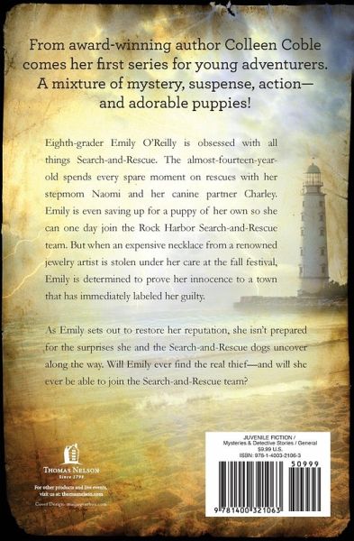 In Rock Harbor Search and Rescue, a middle grade fiction novel based on Colleen Coble's bestselling Rock Harbor series for adults, kids will enjoy the mixture of pets, adventure, suspense, and a mystery. Emily O'Reilly is obsessed with all things Search and Rescue. She volunteers with the team and goes on rescue missions with her stepmom. She is even selling homemade jewelry to save up for her own Search and Rescue puppy. But when an expensive necklace is stolen from a renowned jewelry artist at Rock Harbor's fall festival and Emily is accused of the crime, it looks like she'll never get her puppy and be able to join the Rock Harbor Search and Rescue team. Emily isn't willing to give up on her Search and Rescue dreams that easily, and she sets out to find the real culprit and to restore her reputation. With a few suspects in mind, Emily is determined to uncover the truth, but she isn't prepared for the secrets she and the Search and Rescue dogs sniff out in the process. This exciting mystery is filled with twists and turns that will keep readers on the edge of their seats and have them pining after a Search and Rescue puppy of their own! "Colleen is a master storyteller."--Karen Kingsbury