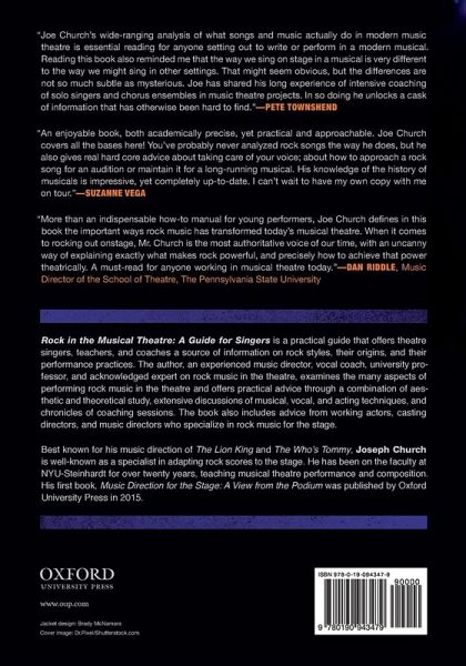 Today's musical theatre world rocks. Rock in the Musical Theatre: A Guide for Singers is a practical guide to the many aspects of performing rock music in the theatre through a combination of aesthetic and theoretical study, extensive discussions of musical, vocal, and acting techniques, and chronicles of coaching sessions.