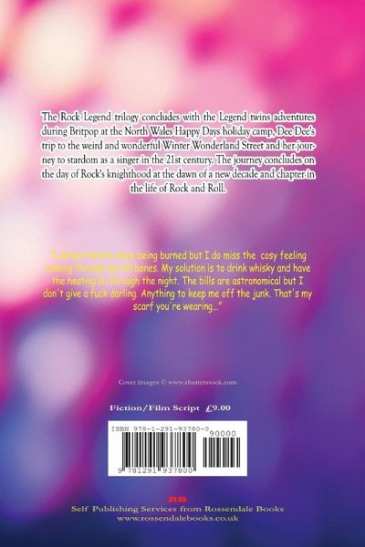 The Rock Legend trilogy concludes with the Legend twins adventures during Britpop at the North Wales Happy Days holiday camp, Dee Dee's trip to the weird and wonderful Winter Wonderland Street and her journey to stardom as a singer in the 21st century. The journey concludes on the day of Rock's knighthood at the dawn of a new decade and chapter in the life of Rock and Roll. "I detest Heroin since being burned but I do miss the cosy feeling running through my old bones. My solution is to drink whisky and have the heating on through the night. The bills are astronomical but I don't give a fuck darling. Anything to keep me off the junk. That's my scarf you're wearing..."