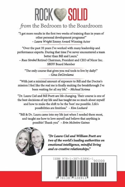 In their breakthrough book Rock Solid: From the Bedroom to the Boardroom, Dr. Laura Ciel and William Poett have distilled over 50 years of combined research and experience in the fields of human performance and emotional intelligence. In this fun, easy to read book you can quickly grasp how to boost your emotional intelligence and begin creating more empowering and co-creative relationships. The authors will walk you through a simple four step process that you can begin using immediately. You will understand the power of this process, gain confidence in your ability to co-create and begin enjoying the freedom and ease of creating Rock Solid Relationships in every area of your life.