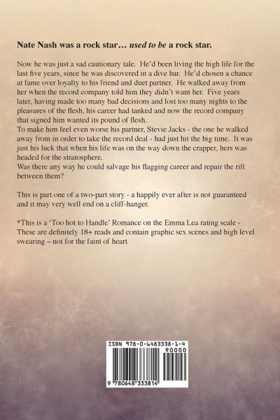 Nate Nash was a rock star… used to be a rock star. Now he was just a sad cautionary tale. He’d been living the high life for the last five years, since he was discovered in a dive bar. He’d chosen a chance at fame over loyalty to his friend and duet partner. He walked away from her when the record company told him they didn’t want her. Five years later, having made too many bad decisions and lost too many nights to the pleasures of the flesh, his career had tanked and now the record company that signed him wanted its pound of flesh. To make him feel even worse his partner, Stevie Jacks - the one he walked away from in order to take the record deal - had just hit the big time. It was just his luck that when his life was on the way down the crapper, hers was headed for the stratosphere. Was there any way he could salvage his flagging career and repair the rift between them? This is part one of a two-part story - a happily ever after is not guaranteed and it may very well end on a cliff-hanger. *This is a ‘Too hot to Handle’ Romance on the Emma Lea rating scale - These are definitely 18+ reads and contain graphic sex scenes and high level swearing – not for the faint of heart