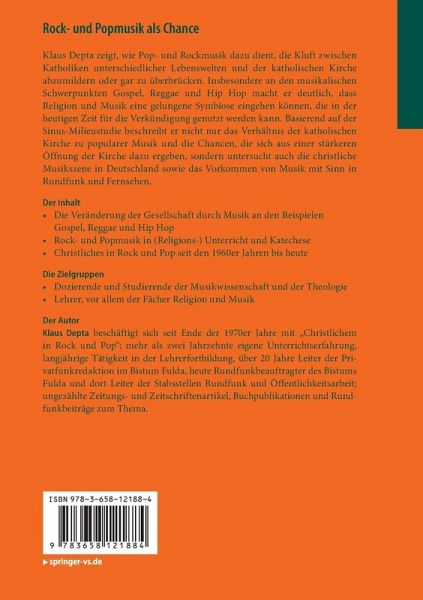 Klaus Depta zeigt, wie Pop- undRockmusik dazu dient, die Kluft zwischen Katholiken unterschiedlicherLebenswelten und der Katholischen Kirche abzumildern oder gar zu überbrücken.Insbesondere an den musikalischen Schwerpunkten Gospel, Reggae und Hip Hop macht erdeutlich, dass Religion und Musik eine gelungene Symbiose eingehen können, diein der heutigen Zeit für die Verkündigung genutzt werden kann. Basierend aufder Sinus-Milieustudie beschreibt er nicht nur das Verhältnis der katholischenKirche zu popularer Musik und die Chancen, die sich aus einer stärkeren Öffnungder Kirche dazu ergeben, sondern untersucht auch die christliche Musikszene inDeutschland sowie das Vorkommen von Musik mit Sinn in Rundfunk und Fernsehen.