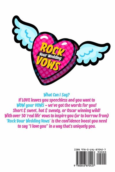 * Loaded up on love, but at a loss for words? * Does the thought of writing vows have you sweating? * Just not the lovey-dovey type? This book is a lifesaver for the down-to-earth, the slightly nerdy, the "love you but not in love with love", the "know how I feel but not how to say it" couples that don't want their vows to hit viral heights, but are just looking to express themselves in their own unique way on their wedding day. Over 50 examples of real vows to inspire you (or borrow from), Rock Your Wedding Vows is the confidence boost you need, to say "I love you" in a way thats right for you.