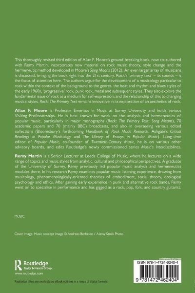 This thoroughly revised third edition of Allan F. Moore's ground-breaking book, now co-authored with Remy Martin, incorporates new material on rock music theory, style change and the hermeneutic method developed in Moore's Song Means (2012). An even larger array of musicians is discussed, bringing the book right into the 21st century. Rock's 'primary text' - its sounds - is the focus of attention here. The authors argue for the development of a musicology particular to rock within the context of the background to the genres, the beat and rhythm and blues styles of the early 1960s, 'progressive' rock, punk rock, metal and subsequent styles. They also explore the fundamental issue of rock as a medium for self-expression, and the relationship of this to changing musical styles. Rock: The Primary Text remains innovative in its exploration of an aesthetics of rock.