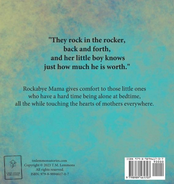 "They rock in the rocker, back and forth, and her little boy knows just how much he is worth." Rockabye Mama gives comfort to those little ones who have a hard time being alone at bedtime, all the while touching the hearts of mothers everywhere.
