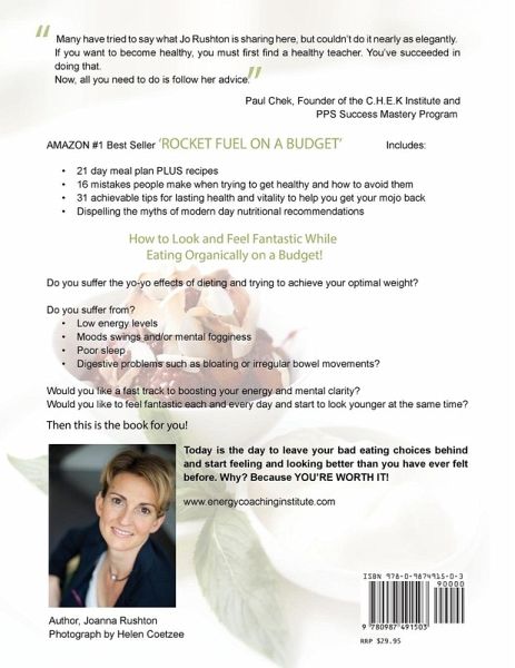 This AMAZON #1 BEST SELLING pocket rocket book is packed with nutritional guidance, recipes and achievable goals for transforming the health of the entire family Would you like to have more energy and mental clarity and just feel fantastic every day for the rest of your life? Rocket Fuel on a Budget - How to get healthy Without going Broke will provide you with: Knowledge of the food myths of modern day nutritional recommendations A 21 day meal plan with recipes to get you started eating right immediately Education on the top 16 mistakes people make when trying to get healthy and how to avoid them Top 12 ways of sourcing affordable organic food in your local community 31 achievable tips for lasting health and vitality In Rocket Fuel On A Budget Joanna Rushton shares how to LOOK and FEEL fantastic while eating organically on a budget. If you suffer from; * Low energy levels * Moods swings and/or mental fogginess * Poor sleep * Digestive problems such as bloating or irregular bowel movements? or the yo-yo effects of dieting and trying to achieve your optimal weight? Then this is the book for you.