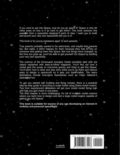 If you want to get into Space, how do you go about it? Space is only 62 miles away so why is it so hard to get there? The science of the forces and energies rocket scientists deal with are clearly explained with easy-to-follow diagrams. You'll find out how a rocket gets the power to overcome gravity and Drag to get into Space. You'll learn how to steer and stay alive while you're up there and various ways to design a spacecraft so it gets you back safely. The many illustrations include innovative Spaceships such as Virgin Galactic's SpaceshipTwo. To get you started with building and flying rockets, there is a practical step-by-step guide to launching a scale model using Estes rocket motors. Tips from experienced rocketeers will get your model rocket flying high and help you get it back in one piece. The final chapter is more challenging: it's full of in-depth rocket science where you learn how to design and test a large rocket engine capable of getting you into Space!