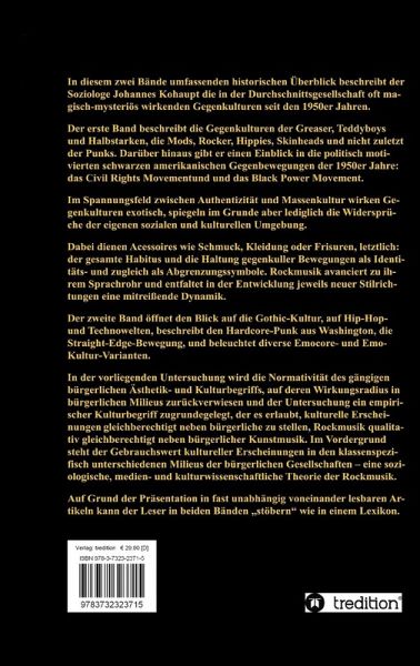 Der erste Band beschreibt die Gegenkulturen der Greaser, Teddyboys und Halbstarken, der Mods, Rocker, Hippies und Skinheads sowie nicht zuletzt