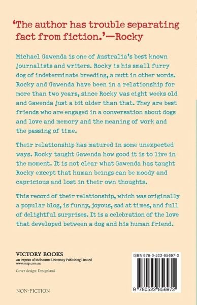 Michael Gawenda is one of Australia's best-known journalists and writers. Rocky is his small furry dog of indeterminate breeding, a mutt in other words. Rocky and Gawenda have been in a relationship for more than two years, since Rocky was eight weeks old and Gawenda just a bit older than that. They are best friends who are engaged in a conversation about dogs and love and memory and the meaning of work and the passing of time. Their relationship has matured in some unexpected ways. Rocky taught Gawenda how good it is to live in the moment. It is not clear what Gawenda has taught Rocky except that human beings can be moody and capricious and lost in their own thoughts. This record of their relationship is funny, joyous, sad at times, and full of delightful surprises. It is a celebration of the love that developed between a dog and his human friend.