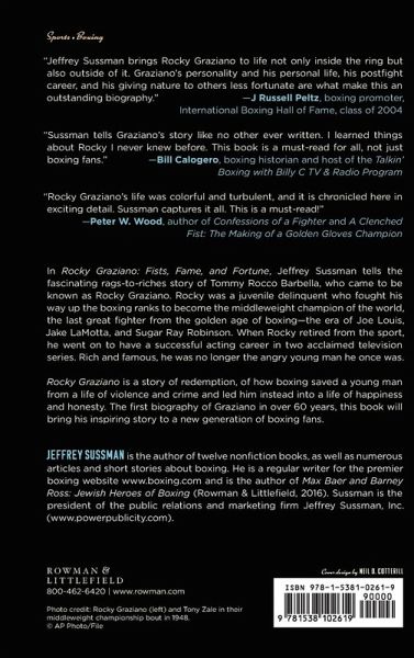 Rocky Graziano, juvenile delinquent, middleweight boxing champion, and comedic actor, was the last great fighter from the golden age of boxing, the era of Joe Louis, Jake LaMotta, and Sugar Ray Robinson. In Rocky Graziano: Fists, Fame, and Fortune, Jeffrey Sussman tells the rags-to-riches story of Tommy Rocco Barbella, who came to be known as Rocky Graziano. Raised by an abusive father, Graziano took to the streets and soon found himself in reformatories and prison cells. Drafted into the U.S. Army, Graziano went AWOL but was eventually caught, tried, and sent to prison for a year. After his release, Rocky went on to have one successful boxing match after another and quickly ascended up the pyramid of professional boxing. In one of the bloodiest battles in the history of the middleweight division, Rocky beat Tony Zale and became the middleweight champion of the world. Rocky retired from boxing after he lost his crown to Sugar Ray Robinson and went on to have a successful acting career in two acclaimed television series. Rich and famous, he was no longer the angry young man he once was. In his post-boxing life, Rocky became known for his good humor, witty remarks, and kindness and generosity to those in need. Rocky Graziano's life is not only inspiring, it is also a story of redemption, of how boxing became the vehicle for saving a young man from a life of anger and crime and leading him into a life of happiness and honesty. The first biography of Graziano in over 60 years, this book will bring his story to a new generation of boxing fans and sports historians.