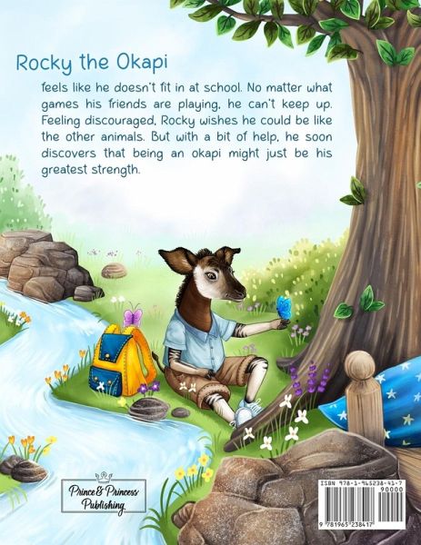 Rocky the Okapi feels like he doesn't fit in at school. No matter what games his friends are playing, he can't keep up. Feeling discouraged, Rocky wishes he could be like the other animals. But with a bit of help, he soon discovers that being an okapi might just be his greatest strength. This heartwarming story celebrates self-acceptance and reminds children that everyone has their special talents waiting to be found. Perfect for: Parents and caregivers seeking a fun and engaging story to share with their little ones. Children ages 4-8 who love unusual animals Teachers and librarians looking for heartwarming read-alouds to promote kindness and self-acceptance.
