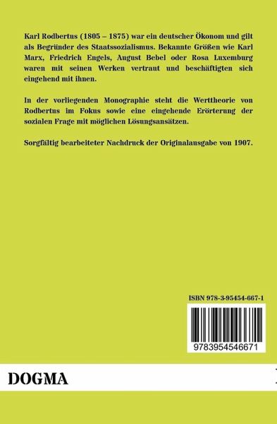 Karl Rodbertus (1805 1875) war ein deutscher Ökonom und gilt als Begründer des Staatssozialismus. Bekannte Größen wie Karl Marx, Friedrich Engels, August Bebel oder Rosa Luxemburg waren mit seinen Werken vertraut und beschäftigten sich eingehend mit ihnen.
