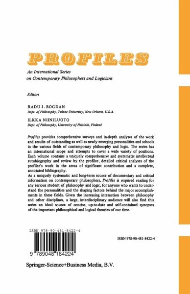 The aim of this series is to inform both professional philosophers and a larger readership (of social and natural scientists, methodologists, mathematicians, students, teachers, publishers, etc. ) about what is going on, who's who, and who does what in contemporary philosophy and logic. PROFILES is designed to present the research activity and the results of already outstanding personalities and schools and of newly emerging ones in the various fields of philosophy and logic. There are many Festschrift volumes dedicated to various philosophers. There is the celebrated Library oj Living Phi/osophers edited by P. A. Schilpp whose format influenced the present enterprise. Still they can only cover very little of the contemporary philosophical scene. Faced with a tremendous expansion of philosophical information and with an almost frightening division of labor and increasing specialization we need systematic and regular ways of keeping track of wh at happens in the profession. PRO FILES is intended to perform such a function. Each volume is devoted to one or several philosophers whose views and results are presented and discussed. The profiled philosopher(s) will summarize and review his (their) own work in the main fields of signifi cant contribution. This work will be discussed and evaluated by invited contributors. Relevant historical and/or biographical data, an up-to date bibliography with short abstracts of the most important works and, whenever possible, references to significant reviews and discussions will also be included.
