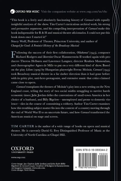 Carousel (1945), with music by Richard Rodgers and the book and lyrics by Oscar Hammerstein II, was their second collaboration following the surprising success of Oklahoma! (1943). They worked again with Theresa Helburn and Lawrence Langner of the Theatre Guild (producers), Rouben Mamoulian (director), and Agnes de Mille (choreographer). But with Oklahoma! still running to sell-out houses, they needed to do something quite different. Based on a play, Liliom (1909), by the Hungarian playwright Ferenc Molnár, Carousel took Broadway musical theater in far darker directions because of its subject matter-the protagonist, Billy Bigelow, is wholly an anti-hero-and also given its extensive music that some claimed came close to opera. The action is shifted from a gritty working-class suburb of Budapest to the New England coast (Maine), but the themes remain the same as two social misfits try to survive harsh economic times. Billy Bigelow is unemployed, prone to domestic violence, and dies in the course of committing a robbery; Julie Jordan sticks by him through thick and thin; and the show seeks some manner of redemption for both of them as Billy is given a day back on earth to do some good for his wife and their daughter. Troubling though these matters are nowadays, they fit squarely in the context of a country moving through the end of World War II to an uncertain future. Not for nothing had composers such as Giacomo Puccini and Kurt Weill already tried to persuade Molnár to release his play. It also led Rodgers and Hammerstein to new heights: songs such as "If I Loved You," Billy's "Soliloquy," and "You'll Never Walk Alone" transformed the American musical. In this book, we discover how and why they came about, and exactly what Carousel was trying to achieve.