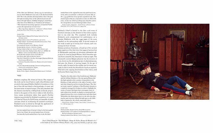 Der in Zusammenarbeit mit Rodney Graham und Yves Gevaert gestaltete Band begleitet eine Ausstellung, die ungefähr 100 Arbeiten des kanadischen Künstlers aus den Jahren 1978 bis 2009 versammelt. Graham (*1949 in Vancouver) benutzt für sie unterschiedlichste Medien, etwa Bücher, Video, Skulpturen, Apparate, Gemälde, Fotos, Installationen, Drucke und Musik, greift Schlüsselkonzepte der Kunstgeschichte auf und spielt mit Problemen der Wahrnehmung.