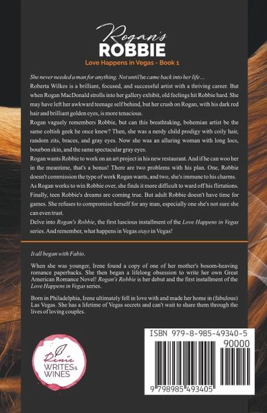 She never needed a man for anything. Not until he came back into her life... Roberta Wilkes is a brilliant, focused, and successful artist with a thriving career. But when Rogan MacDonald strolls into her gallery exhibit, old feelings hit Robbie hard. She may have left her awkward teenage self behind, but her crush on Rogan, with his dark red hair and brilliant golden eyes, is more tenacious. Rogan vaguely remembers Robbie, but can this breathtaking, bohemian artist be the same coltish geek he once knew? Then, she was a nerdy child prodigy with coily hair, random zits, braces, and gray eyes. Now she was an alluring woman with long locs, bourbon skin, and the same spectacular gray eyes. Rogan wants Robbie to work on an art project in his new restaurant. And if he can woo her in the meantime, that's a bonus! There are two problems with his plan. One, Robbie doesn't commission the type of work Rogan wants, and two, she's immune to his charms. As Rogan works to win Robbie over, she finds it more difficult to ward off his flirtations. Finally, teen Robbie's dreams are coming true. But adult Robbie doesn't have time for games. She refuses to compromise herself for any man, especially one she's not sure she can even trust. Delve into Rogan's Robbie, the first luscious installment of the Love Happens in Vegas series. And remember, what happens in Vegas stays in Vegas!