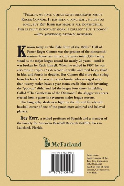 Known today as "the Babe Ruth of the 1880s," Hall of Famer Roger Connor was the greatest of the nineteenth-century home run hitters, his career total (138) having stood as the major league record for nearly 24 years--until it was broken by Ruth himself. When he retired in 1897, he was also tops in triples (233), second in walks and total bases, third in hits, and fourth in doubles. But Connor did more than swing from his heels. He was an expert bunter who averaged more than twenty stolen bases a year (some credit him with inventing the "pop-up" slide) and led the league four times in fielding. Called "The Gentleman of the Diamond," the slugger was never ejected from a game in seventeen major league seasons. This biography sheds new light on the life and five-decade baseball career of one of the games most admired and beloved players.