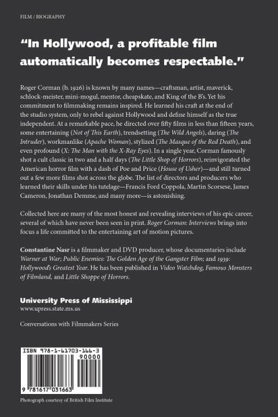 Roger Corman (b. 1926) is known by many names-craftsman, artist, maverick, schlockmeister, mini-mogul, mentor, cheapskate, and King of the B's. Yet his commitment to filmmaking remains inspired. He learned his craft at the end of the studio system, only to rebel against Hollywood and define himself as the true independent. And the list of directors and producers who learned under his tutelage--Francis Ford Coppola, Martin Scorsese, James Cameron, Jonathan Demme, and many more--is astonishing. Collected here are many of the most honest and revealing interviews of his epic career, several of which have never been seen in print. Roger Corman: Interviews brings into focus a life committed to the entertaining art of motion pictures. Corman's rare talent combined artistic drive with business savvy, ensuring a successful career that was constantly in motion. At a remarkable pace more akin to silent movies than modern Hollywood, he directed over fifty films in less than fifteen years, some entertaining (Not of This Earth), trendsetting (The Wild Angels), daring (The Intruder), workmanlike (Apache Woman), stylized (The Masque of the Red Death) and even profound (X: The Man with the X-Ray Eyes). In a single year, Corman famously shot a cult classic in two and a half days (The Little Shop of Horrors), reinvigorated the American horror film with a dash of Poe and Price (House of Usher)--and still turned out a few more films shot across the globe. Recently awarded an honorary Oscar for his lifetime contribution to cinema, the self-made Corman has created a legacy as a defining filmmaker.