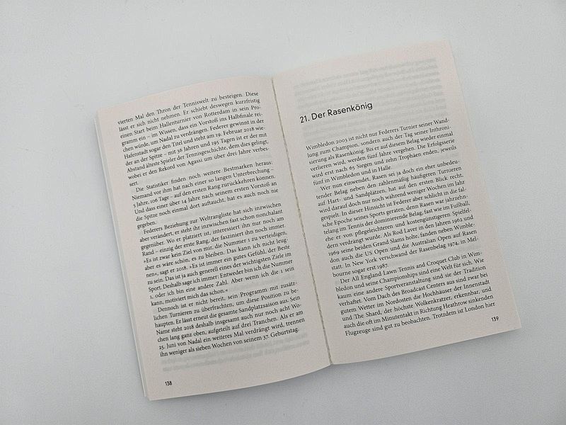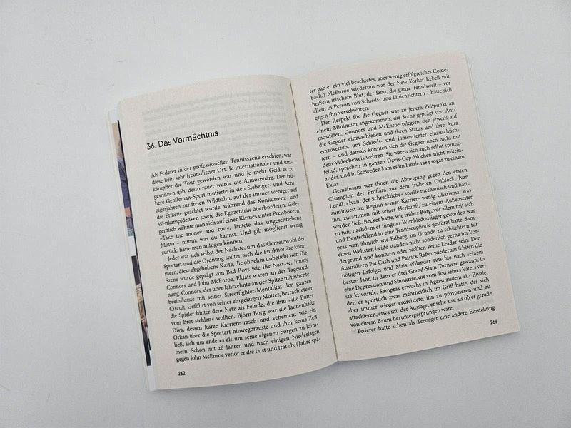 Der Sportredakteur und Federer-Kenner der ersten Stunde René Stauffer hat über den Ausnahmeathleten nun eine Biografie geschrieben, die Fans und Laien gleichermaßen zu begeistern weiß. Hat man erst einmal die ersten 80 Seiten überstanden, in denen Federers erstaunliches Comeback von 2017 behandelt wird und die sich im Ganzen etwas zäh lesen, wird man mit einer umfangreichen Einschätzung über den Sportler und Menschen Roger Federer belohnt. Er wächst in einem tennisaffinen Umfeld auf, das früh sein Talent entdeckt und fördert. Zuerst spielte er noch Fußball und Tennis parallel, entschied sich aber im Laufe der Zeit für Tennis und besuchte fortan das nationale Leistungszentrum von Swiss Tennis. Hier bekommt er das nötige Rüstzeug für seine spätere Erfolgskarriere. Anfangs hatte er noch nicht seine Emotionen im Griff und verlor einige Partien gegen ältere, erfahrenere Spieler. Doch dies sollte sich mit den richtigen Trainern und den ersten entscheidenden Siegen schnell ändern. Sein Ehrgeiz und seine ungezügelte Leidenschaft für den Weißen Sport trieben ihn zu Höchstleistungen, auch im ungeliebten Training, an. Seine Rekorde und Auszeichnungen bis zum heutigen Tage können sich sehen lassen und sind einfach exzeptionell.