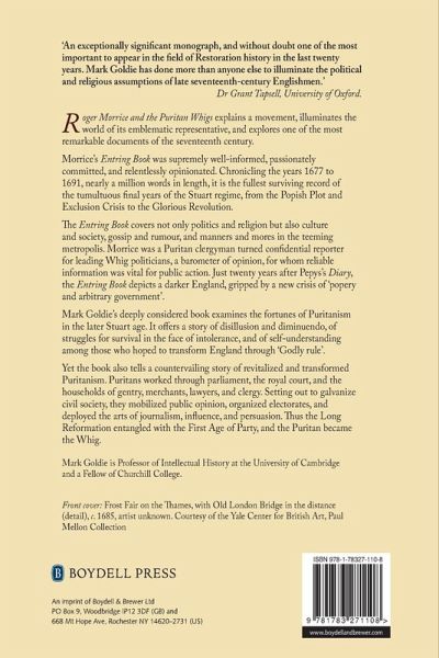 'An exceptionally significant monograph, and without doubt one of the most important to appear in the field of Restoration history in the last twenty years. Mark Goldie has done more than anyone else to illuminate the political and religious assumptions of late seventeenth-century Englishmen.' Dr Grant Tapsell, University of Oxford. Roger Morrice and the Puritan Whigs explains a movement, illuminates the world of its emblematic representative, and explores one of the most remarkable documents of the seventeenth century. Morrice's Entring Book was supremely well-informed, passionately committed, and relentlessly opinionated. Chronicling the years 1677 to 1691, nearly a million words in length, it is the fullest surviving record of the tumultuous final years of the Stuart regime, from the Popish Plot and Exclusion Crisis to the Glorious Revolution. The Entring Book covers not only politics and religion but also culture and society, gossip and rumour, and manners and mores in the teeming metropolis. Morrice was a Puritan clergyman turned confidential reporter for leading Whig politicians, a barometer of opinion, for whom reliable information was vital for public action. Just twenty years after Pepys's Diary, the Entring Book depicts a darker England, gripped by a new crisis of 'popery and arbitrary government'. Mark Goldie's deeply considered book examines the fortunes of Puritanism in the later Stuart age. It offers a story of disillusion and diminuendo, of struggles for survival in the face of intolerance, and of self-understanding among those who hoped to transform England through 'Godly rule'. Yet the book also tells a countervailing story of revitalized and transformed Puritanism. Puritans worked through parliament, the royal court, and the households of gentry, merchants, lawyers, and clergy. Setting out to galvanize civil society, they mobilized public opinion, organized electorates, and deployed the arts of journalism, influence, and persuasion. Thus the Long Reformation entangled with the First Age of Party, and the Puritan became the Whig. Mark Goldie is Professor of Intellectual History at the University of Cambridge and a Fellow of Churchill College.