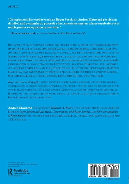 Recognized as the primary American symphonist of the 20th century, Roger Sessions (1896-1985) is one of the leading representatives of high modernism. His stature among American composers rivals Charles Ives, Aaron Copland, and Elliott Carter. Sessions was awarded two Pulitzer prizes, election to the American Academy of Arts and Letters, winning the Brandeis Creative Arts Award, the Gold Medal of the American Academy, and a MacDowell Medal, in addition to 14 honorary doctorates. Roger Sessions: A Biography brings together considerable previously unpublished archival material, such as letters, lectures, interviews, and articles, to shed light on the life and music of this major American composer. Andrea Olmstead, a teaching colleague of Sessions at Juilliard and the leading scholar on his music, has written a complete biography charting five touchstone areas through Sessions's eighty-eight years: music, religion, politics, money, and sexuality.