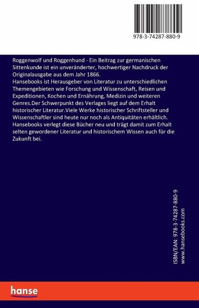 Roggenwolf und Roggenhund - Ein Beitrag zur germanischen Sittenkunde ist ein unveränderter, hochwertiger Nachdruck der Originalausgabe aus dem Jahr 1866.