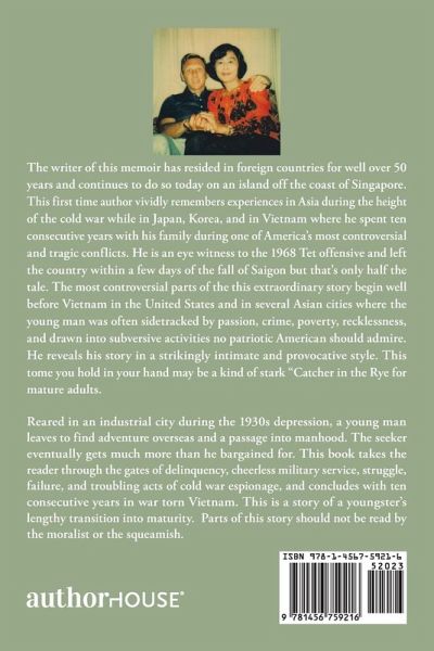 Reared in a industrial city during the 1930s depression a young man leaves to find overseas adventure and a passage into adulthood. The seeker eventually gets much more than he bargained for. This book takes the reader through the gates of delinquency, cheerless military service, struggles, failures, and troubling acts including cold war espionage, and concluding with ten consecutive years in war torn Vietnam. This is a story of a youngster's lengthy transition into maturity. Parts of this story should not be read by the moralist or the squeamish.
