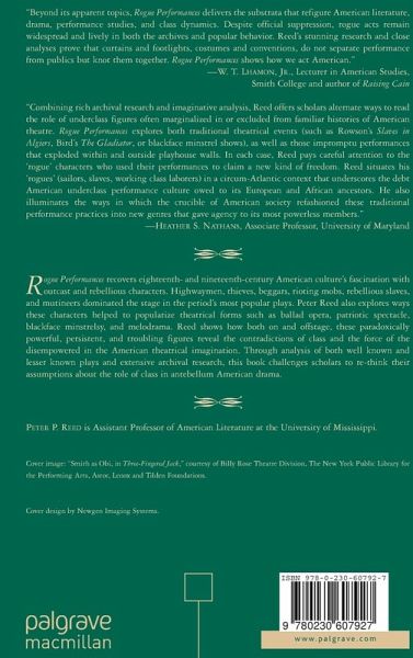 "Combining rich archival research and imaginative analysis, Reed offers scholars alternate ways to read the role of underclass figures often marginalized in or excluded from familiar histories of American theatre. Rogue Performances explores both traditional theatrical events (such as Rowson's Slaves in Algiers, Bird's The Gladiator, or blackface minstrel shows), as well as those impromptu performances that exploded within and outside playhouse walls. In each case, Reed pays careful attention to the rogue characters who used their performances to claim a new kind of freedom. Reed situates his rogues (sailors, slaves, working class laborers) in a circum-Atlantic context that underscores the debt American underclass performance culture owed to its European and African ancestors. He also illuminates the ways in which the crucible of American society refashioned these traditional performance practices into new genres that gave agency to its most powerless members." - Heather S. Nathans, Associate Professor, University of Maryland