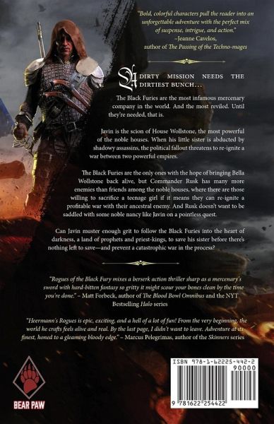 A dirty mission needs the dirtiest bunch... The Black Furies are the most infamous mercenary company in the world. And the most reviled. Until they're needed, that is. Javin is the scion of House Wollstone, the most powerful of the noble houses. When his little sister is abducted by shadowy assassins, the political fallout threatens to re-ignite a war between two powerful empires. The Black Furies are the only hope of bringing Bella Wollstone back alive, but Commander Rusk has many more enemies than friends among the noble houses, where there are those willing to sacrifice a teenage girl if it means they can re-ignite a profitable war with their ancestral enemy. And Rusk doesn't want to be saddled with some noble nancy like Javin on a pointless quest. Can Javin muster enough grit to follow the Black Furies into the heart of darkness, a land of prophets and priest-kings, to save his sister before there's nothing left to save-and prevent a catastrophic war in the process? Perfect for fans of Glen Cook, Jeff Salyards, and David Gemmell, Rogues of the Black Fury is a gritty action yarn sharp as a mercenary's sword.