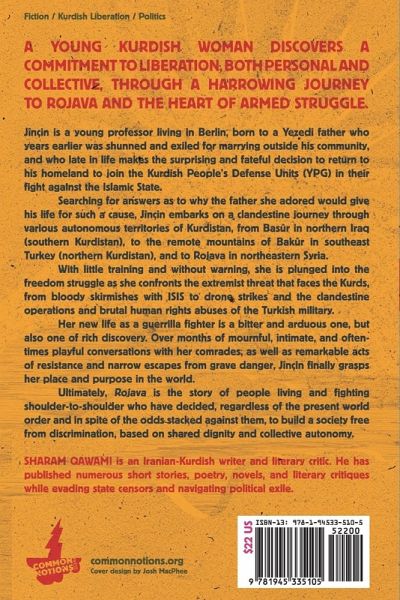 A young Kurdish woman discovers a commitment to liberation, both personal and collective, through a harrowing journey to Rojava and the heart of armed struggle.Jînçin is a young professor living in Berlin, born to a Yezedi father who years earlier was shunned and exiled for marrying outside his community, and who late in life makes the surprising and fateful decision to return to his homeland to join the Kurdish People's Defense Units (YPG) in their fight against the Islamic State.Searching for answers as to why the father she adored would give his life for such a cause, Jînçin embarks on a clandestine journey through various autonomous territories of Kurdistan, from Basûr in northern Iraq (southern Kurdistan), to the remote mountains of Bakûr in southeast Turkey (northern Kurdistan), and to Rojava in northeastern Syria.With little training and without warning, she is plunged into the freedom struggle as she confronts the extremist threat that faces the Kurds, from bloody skirmishes with ISIS to drone strikes and the clandestine operations and brutal human rights abuses of the Turkish military. Her new life as a guerrilla fighter is a bitter and arduous one, but also one of rich discovery. Over months of mournful, intimate, and often-times playful conversations with her comrades, as well as remarkable acts of resistance and narrow escapes from grave danger, Jînçin finally grasps her place and purpose in the world. Ultimately, Rojava is the story of people living and fighting shoulder-to-shoulder who have decided, regardless of the present world order and in spite of the odds stacked against them, to build a society free from discrimination, based on shared dignity and collective autonomy.