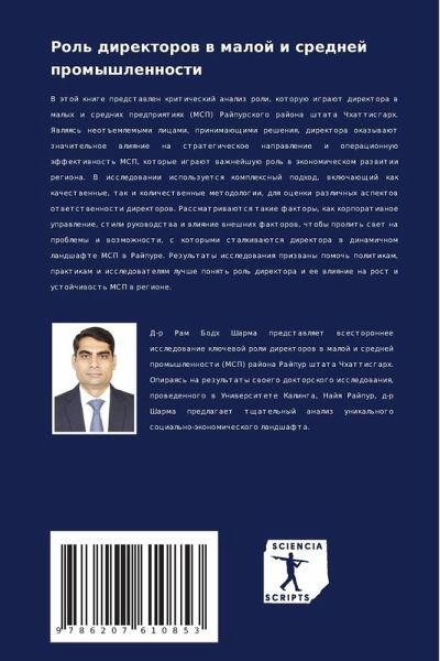 V ätoj knige predstawlen kriticheskij analiz roli, kotoruü igraüt direktora w malyh i srednih predpriqtiqh (MSP) Rajpurskogo rajona shtata Chhattisgarh. Yawlqqs' neot#emlemymi licami, prinimaüschimi resheniq, direktora okazywaüt znachitel'noe wliqnie na strategicheskoe naprawlenie i operacionnuü äffektiwnost' MSP, kotorye igraüt wazhnejshuü rol' w äkonomicheskom razwitii regiona. V issledowanii ispol'zuetsq komplexnyj podhod, wklüchaüschij kak kachestwennye, tak i kolichestwennye metodologii, dlq ocenki razlichnyh aspektow otwetstwennosti direktorow. Rassmatriwaütsq takie faktory, kak korporatiwnoe uprawlenie, stili rukowodstwa i wliqnie wneshnih faktorow, chtoby prolit' swet na problemy i wozmozhnosti, s kotorymi stalkiwaütsq direktora w dinamichnom landshafte MSP w Rajpure. Rezul'taty issledowaniq prizwany pomoch' politikam, praktikam i issledowatelqm luchshe ponqt' rol' direktora i ee wliqnie na rost i ustojchiwost' MSP w regione.