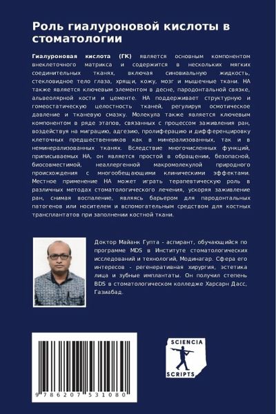 Gialuronowaq kislota (GK) qwlqetsq osnownym komponentom wnekletochnogo matrixa i soderzhitsq w neskol'kih mqgkih soedinitel'nyh tkanqh, wklüchaq sinowial'nuü zhidkost', steklowidnoe telo glaza, hrqschi, kozhu, mozg i myshechnye tkani. HA takzhe qwlqetsq klüchewym älementom w desne, parodontal'noj swqzke, al'weolqrnoj kosti i cemente. HA podderzhiwaet strukturnuü i gomeostaticheskuü celostnost' tkanej, reguliruq osmoticheskoe dawlenie i tkanewuü smazku. Molekula takzhe qwlqetsq klüchewym komponentom w rqde ätapow, swqzannyh s processom zazhiwleniq ran, wozdejstwuq na migraciü, adgeziü, proliferaciü i differencirowku kletochnyh predshestwennikow kak w mineralizowannyh, tak i w nemineralizowannyh tkanqh. Vsledstwie mnogochislennyh funkcij, pripisywaemyh NA, on qwlqetsq prostoj w obraschenii, bezopasnoj, biosowmestimoj, neallergennoj makromolekuloj prirodnogo proishozhdeniq s mnogoobeschaüschimi klinicheskimi äffektami. Mestnoe primenenie HA mozhet igrat' terapewticheskuü rol' w razlichnyh metodah stomatologicheskogo lecheniq, uskorqq zazhiwlenie ran, snimaq wospalenie, qwlqqs' bar'erom dlq parodontal'nyh patogenow ili nositelem i wspomogatel'nym sredstwom dlq kostnyh transplantatow pri zapolnenii kostnoj tkani.