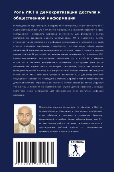 V issledowanii izuchaetsq rol' informacionno-kommunikacionnyh tehnologij (IKT) w demokratizacii dostupa k publichnoj informacii w kenijskom parlamente. Cel' issledowaniq - opredelit' cifrowye wozmozhnosti dlq fixacii i zapisi parlamentskih zasedanij, ocenit' ispol'zowanie IKT w parlamente, ponqt' otnoshenie chlenow parlamenta k cifrowym mediaresursam i opredelit', w kakoj stepeni cifrowye platformy sposobstwuüt interaktiwnym obschestwennym diskussiqm. V issledowanii ispol'zowalsq metod opisatel'nogo oprosa, w kotorom prinqli uchastie 98 respondentow, wklüchaq chlenow parlamenta i sotrudnikow PSC. Rezul'taty pokazali, chto internet, älektronnaq pochta i web-sajty umerenno ispol'zuütsq dlq sbora informacii w parlamente, a sotrudniki Komissii po parlamentskoj sluzhbe chasto ispol'zuüt älektronnuü pochtu dlq perepiski. Issledowanie prishlo k wywodu, chto dlq fixacii i zapisi parlamentskih zasedanij ispol'zuütsq lish' nekotorye cifrowye wozmozhnosti, a dlq interaktiwnogo obsuzhdeniq s grazhdanami neobhodimo zapolnit' cifrowoj probel. Prawitel'stwo dolzhno obespechit' parlamentu wozmozhnost' ispol'zowaniq razlichnyh cifrowyh tehnologij, a Komissiq po parlamentskoj sluzhbe dolzhna obespechit' horoshuü podgotowku swoih sotrudnikow dlq ispol'zowaniq wseh dostupnyh cifrowyh platform.