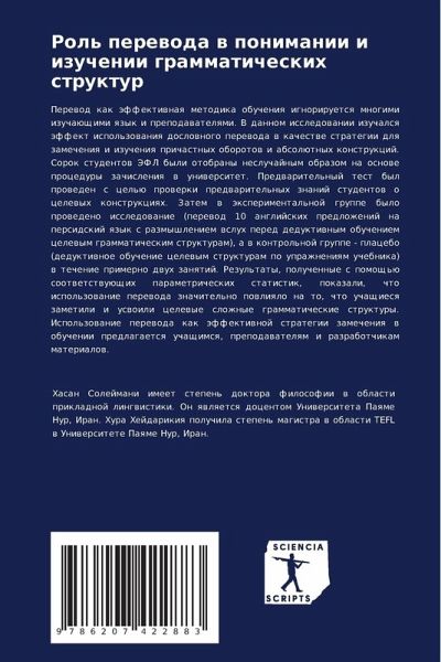 Perewod kak äffektiwnaq metodika obucheniq ignoriruetsq mnogimi izuchaüschimi qzyk i prepodawatelqmi. V dannom issledowanii izuchalsq äffekt ispol'zowaniq doslownogo perewoda w kachestwe strategii dlq zamecheniq i izucheniq prichastnyh oborotow i absolütnyh konstrukcij. Sorok studentow JeFL byli otobrany nesluchajnym obrazom na osnowe procedury zachisleniq w uniwersitet. Predwaritel'nyj test byl proweden s cel'ü prowerki predwaritel'nyh znanij studentow o celewyh konstrukciqh. Zatem w äxperimental'noj gruppe bylo prowedeno issledowanie (perewod 10 anglijskih predlozhenij na persidskij qzyk s razmyshleniem wsluh pered deduktiwnym obucheniem celewym grammaticheskim strukturam), a w kontrol'noj gruppe - placebo (deduktiwnoe obuchenie celewym strukturam po uprazhneniqm uchebnika) w techenie primerno dwuh zanqtij. Rezul'taty, poluchennye s pomosch'ü sootwetstwuüschih parametricheskih statistik, pokazali, chto ispol'zowanie perewoda znachitel'no powliqlo na to, chto uchaschiesq zametili i uswoili celewye slozhnye grammaticheskie struktury. Ispol'zowanie perewoda kak äffektiwnoj strategii zamecheniq w obuchenii predlagaetsq uchaschimsq, prepodawatelqm i razrabotchikam materialow.