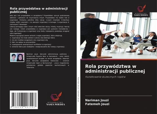 Jaka jest rola przywództwa w zarz¿dzaniu? Przywództwo opisuje podstawow¿ zdolno¿¿ i gotowo¿¿ do inspirowania innych. Przywództwo ma wäne role w organizacji. Omówmy pokrótce kilka rzeczy: 1-coach 2-bohater 3-interface mi¿dzy lud¿mi wewn¿trz i na zewn¿trz organizacji 4-manager 5-organizacja 6-clairvoyant 7-developer Liderzy pomagaj¿ sobie i innym robi¿ w¿äciwe rzeczy, mówi¿, inspiruj¿ i tworz¿ co¿ nowego. Celem przywództwa w organizacji jest poznanie mened¿erów i tego, jak funkcjonuj¿ w organizacji oraz kiedy rozwi¿zania pozwalaj¿ osi¿gn¿¿ cele organizacji.Mo¿emy wyci¿gn¿¿ pewne wnioski z nagiej organizacji, które obejmuj¿1. organizacja nie mo¿e odnie¿¿ sukcesu bez dobrego lidera2. nie jest mo¿liwe osi¿gni¿cie celu organizacji si¿¿3. lider ma wp¿yw na pracowników4. rozwi¿zywanie wewn¿trznych konfliktów w organizacji 5. istnienie lidera jest niezb¿dne i niezaprzeczalne dla rozwoju organizacji.