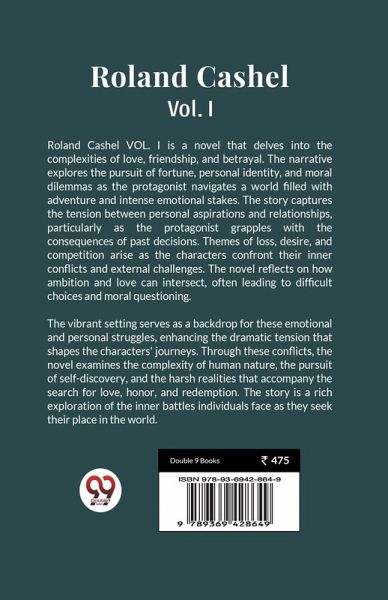Roland Cashel VOL. I is a novel that delves into the complexities of love, friendship, and betrayal. The narrative explores the pursuit of fortune, personal identity, and moral dilemmas as the protagonist navigates a world filled with adventure and intense emotional stakes. The story captures the tension between personal aspirations and relationships, particularly as the protagonist grapples with the consequences of past decisions. Themes of loss, desire, and competition arise as the characters confront their inner conflicts and external challenges. The novel reflects on how ambition and love can intersect, often leading to difficult choices and moral questioning. The vibrant setting serves as a backdrop for these emotional and personal struggles, enhancing the dramatic tension that shapes the characters' journeys. Through these conflicts, the novel examines the complexity of human nature, the pursuit of self-discovery, and the harsh realities that accompany the search for love, honor, and redemption. The story is a rich exploration of the inner battles individuals face as they seek their place in the world.