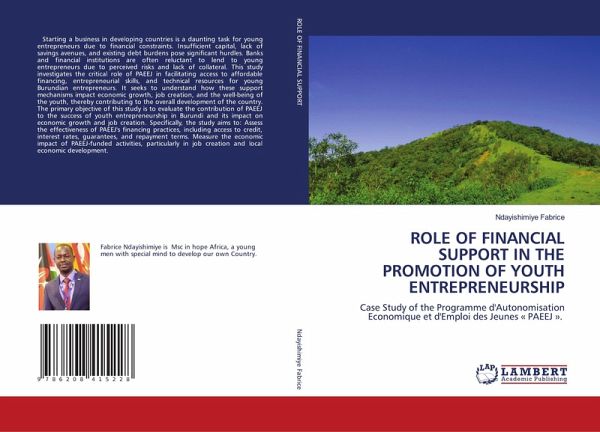 Starting a business in developing countries is a daunting task for young entrepreneurs due to financial constraints. Insufficient capital, lack of savings avenues, and existing debt burdens pose significant hurdles. Banks and financial institutions are often reluctant to lend to young entrepreneurs due to perceived risks and lack of collateral. This study investigates the critical role of PAEEJ in facilitating access to affordable financing, entrepreneurial skills, and technical resources for young Burundian entrepreneurs. It seeks to understand how these support mechanisms impact economic growth, job creation, and the well-being of the youth, thereby contributing to the overall development of the country. The primary objective of this study is to evaluate the contribution of PAEEJ to the success of youth entrepreneurship in Burundi and its impact on economic growth and job creation. Specifically, the study aims to: Assess the effectiveness of PAEEJ's financing practices, including access to credit, interest rates, guarantees, and repayment terms. Measure the economic impact of PAEEJ-funded activities, particularly in job creation and local economic development.